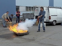 Cette formation, d’une durée d’une heure et demie, confronte les participants à des feux réels après un apport de connaissances théoriques sur les classes de feux et les types d’extincteurs.